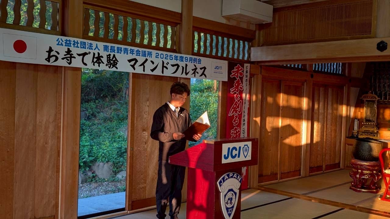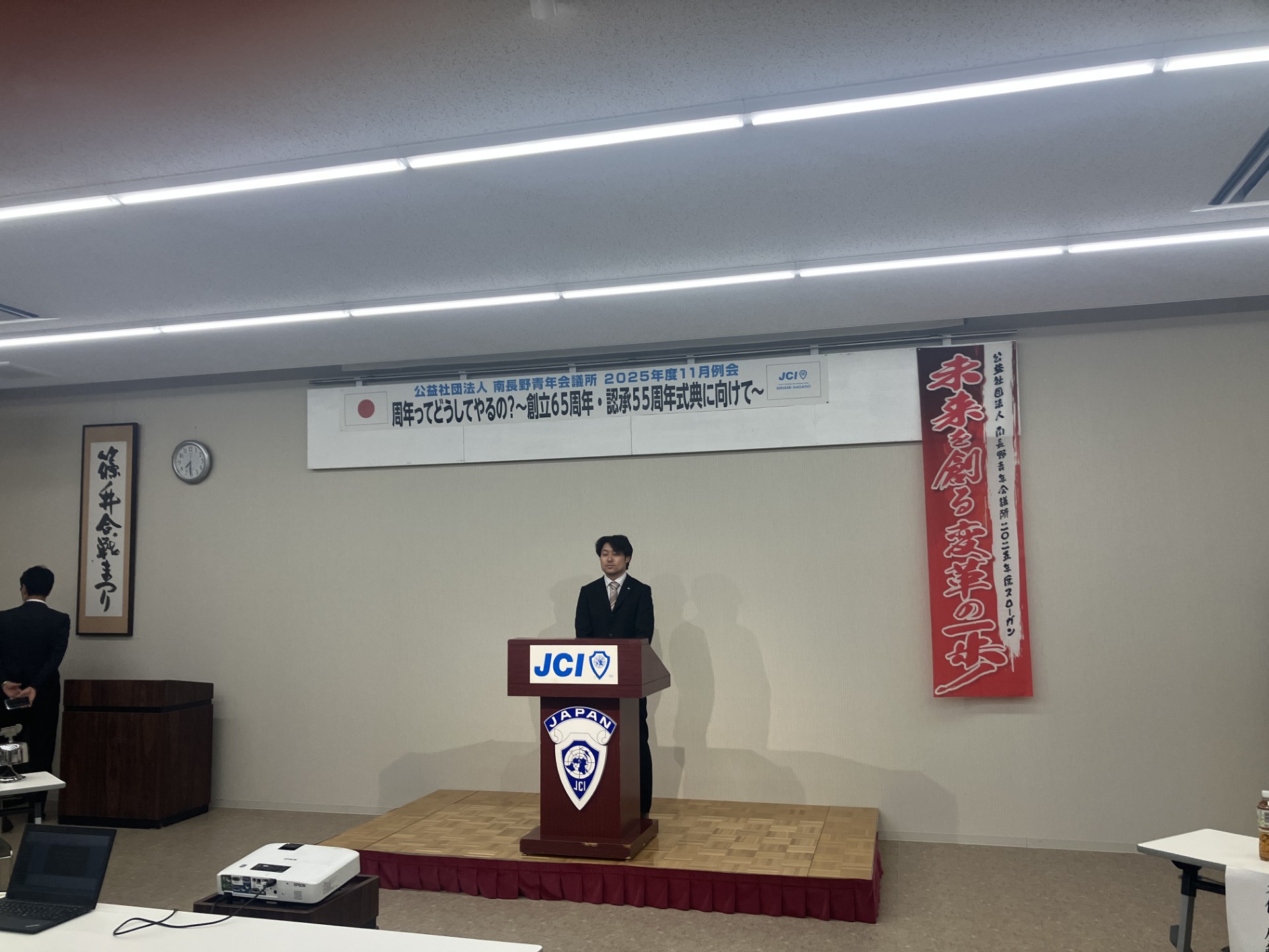 8月22日(金)、第2回通常総会が開催されました。 総会に上程された3議案は全て無事承認され、2026年度理事長予定者として酒井信治君が選任されました。 選任された酒井理事長予定者は、第2部において、ご臨席賜りました南長野青年会議所シニア会の役員の皆様、北信地区に拠点を置き、志を同じくする4JC(長野、須坂、中野、みゆき野)の理事長及び専務理事の前で、飯田理事長より当青年会議所の理事長に代々伝わる「黎明の鍵」の伝達を受け、ご来賓の皆様の前で、2026年度に向けた熱い思いを語りました。また、ご来賓を代表して、南長野青年会議所シニア会 会長 山本 雅彦 先輩の激励のお言葉を賜り、次年度の南長野青年会議所の展望を感じさせる式でした。 今年度の青年会議所もまだまだこれから様々な事業を行ってまいります。 引き続きご指導、ご鞭撻のほどよろしくお願いいたします。![]()